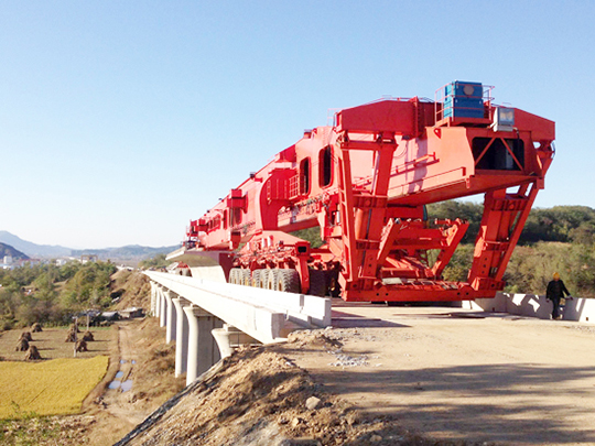以及生產(chǎn)更新運架產(chǎn)品能架設(shè)跨度40M高速鐵路箱梁的:SXJ1000T/40M一跨式架橋機(配套攀爬式運梁車可以實現(xiàn)過隧道零距離架梁)和攀爬式運梁車。并能對現(xiàn)有32M分體式運架設(shè)備進(jìn)行改造,改造后能實現(xiàn)高低位架設(shè)跨度40M高速鐵路箱梁(高位改造不能過隧道,把原架橋機改造一跨式,把原運梁車增加2軸。低位改造能過隧道架梁,把原架橋機改造一跨式低位,把原運梁車改成攀爬式運梁車并增加二臺喂梁臺車實現(xiàn)過隧道架梁)。